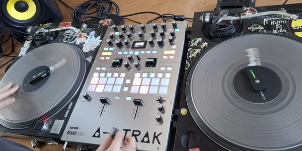 Here two copies of the same record are used to loop and manipulate specific sections, creating complex rhythms and patterns.